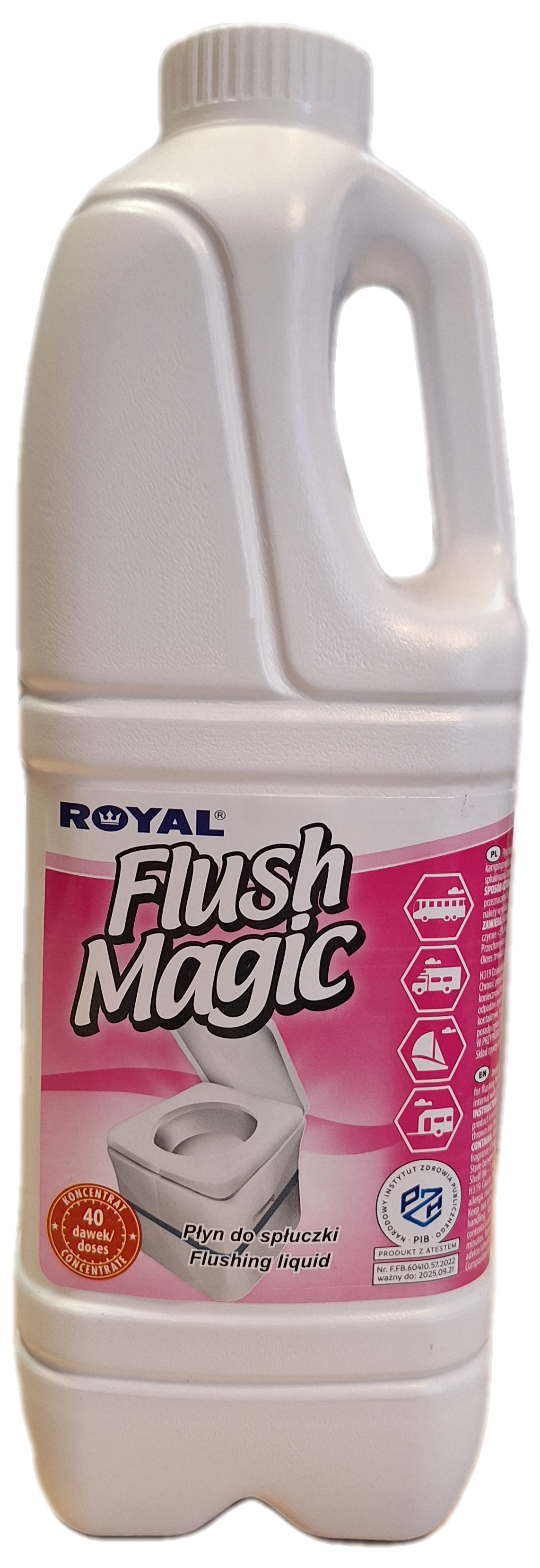 Nalijte 50 ml přípravku FLUSH MAGIC do 15L nádržky na splachovací vodu a poté ji naplňte vodou. Přípravek není určen pro centrální nádrže na čistou vodu v obytných automobilech, karavanech, autobusech nebo jachtách.