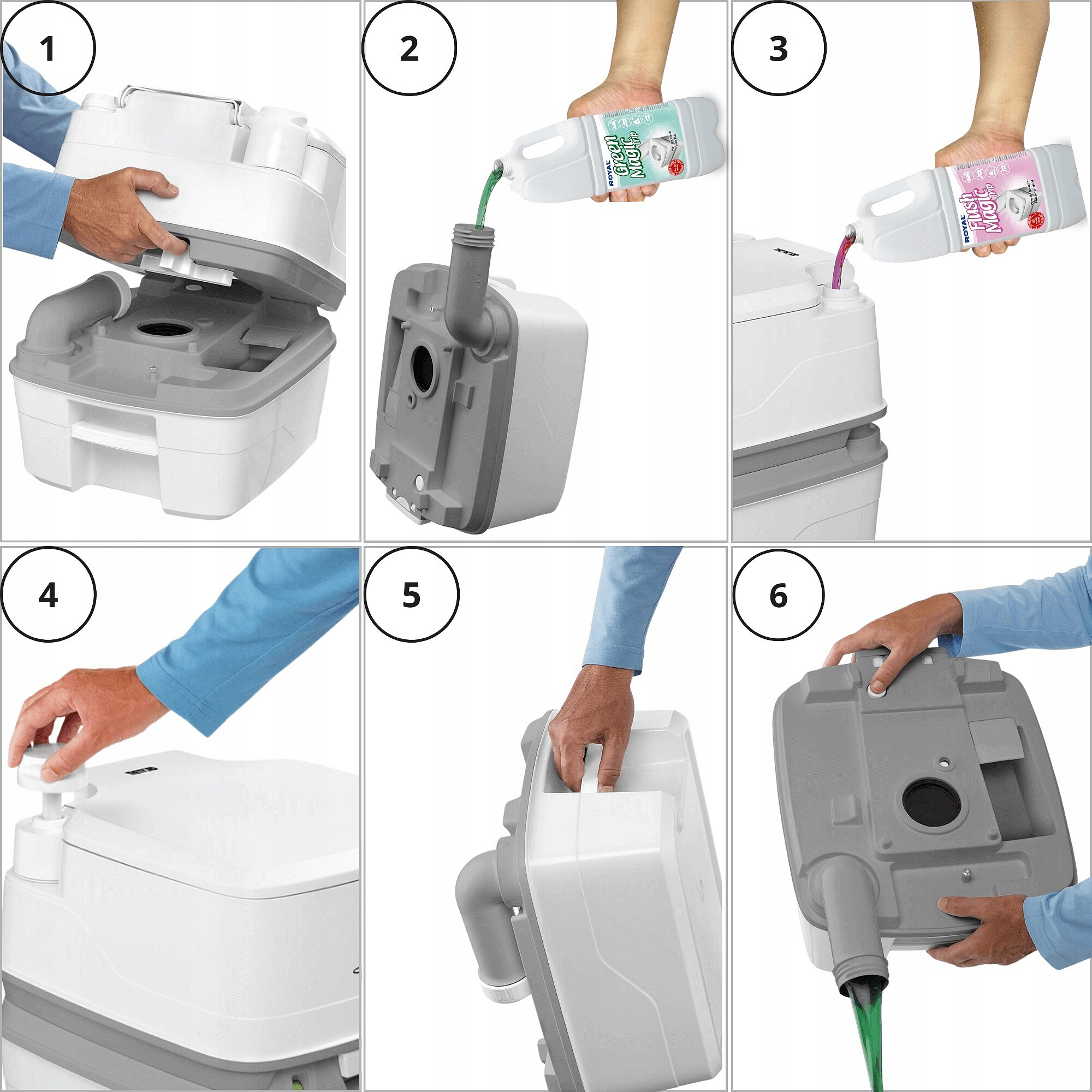 Důležité upozornění: Tento přípravek je určen pouze pro odpadní nádrže na fekálie. Nepoužívejte jej do splachovacích ani centrálních nádrží na čistou vodu. Toaletu vyprazdňujte pouze do k tomu určených kanalizačních zařízení. Prázdné obaly opláchněte vodou a recyklujte.