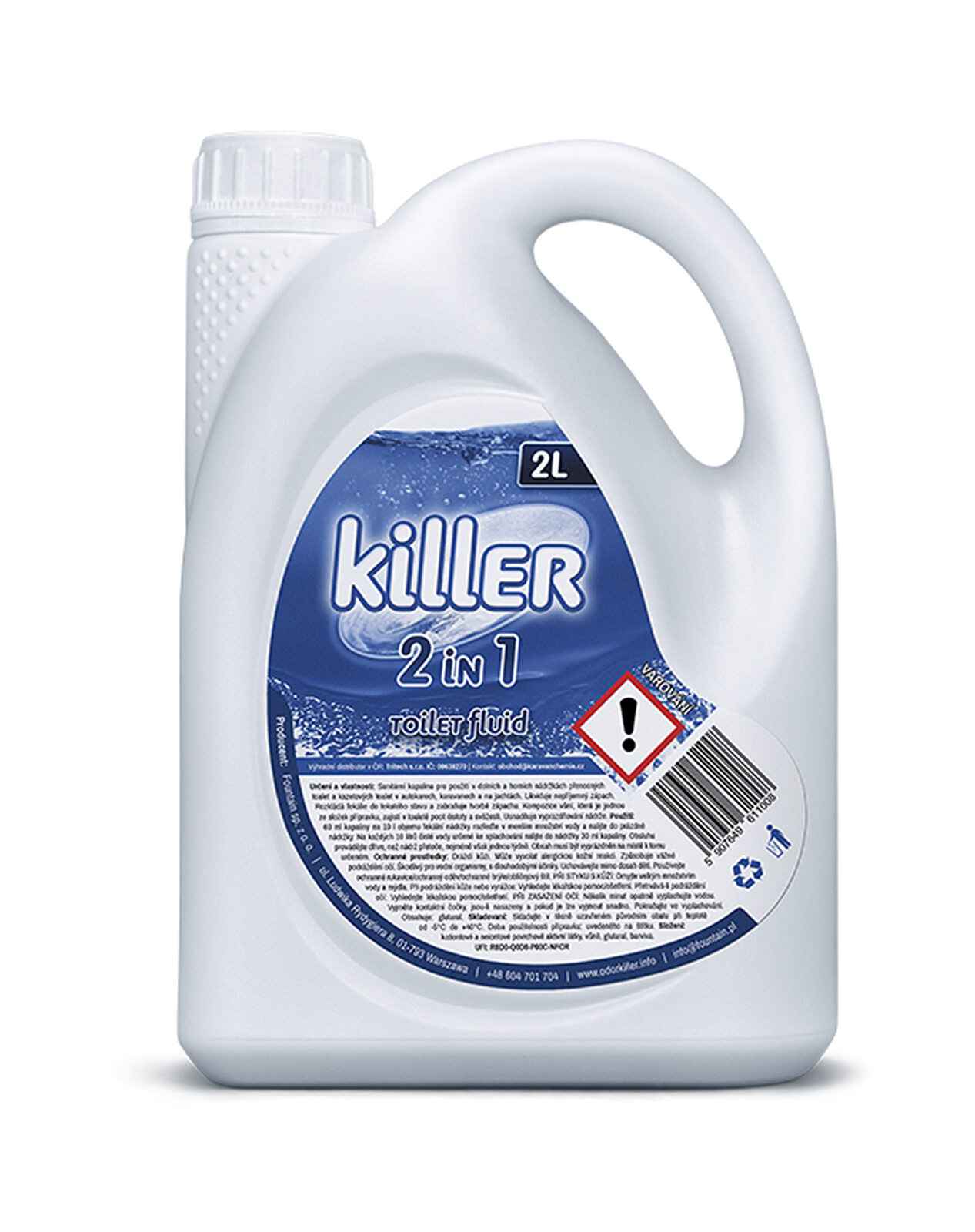 Univerzální Killer 2v1 je špičkový přípravek určený pro mobilní, chemické a suché toalety. Díky své dvojí funkci – rozkládací a sanitární – účinně působí v odpadních kazetách i splachovacích nádržích. Zajišťuje hygienické prostředí, účinně neutralizuje pachy a zabraňuje tvorbě usazenin.