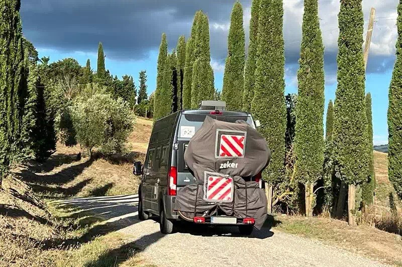 Kryt jízdního kola na nosič jízdních kol namontovaný na tažné zařízení. Působí jako ochrana proti nepříznivým povětrnostním vlivům, jako jsou srážky nebo sluneční záření. Navíc chrání jízdní kola před nečistotami a mechanickým poškozením během přepravy.