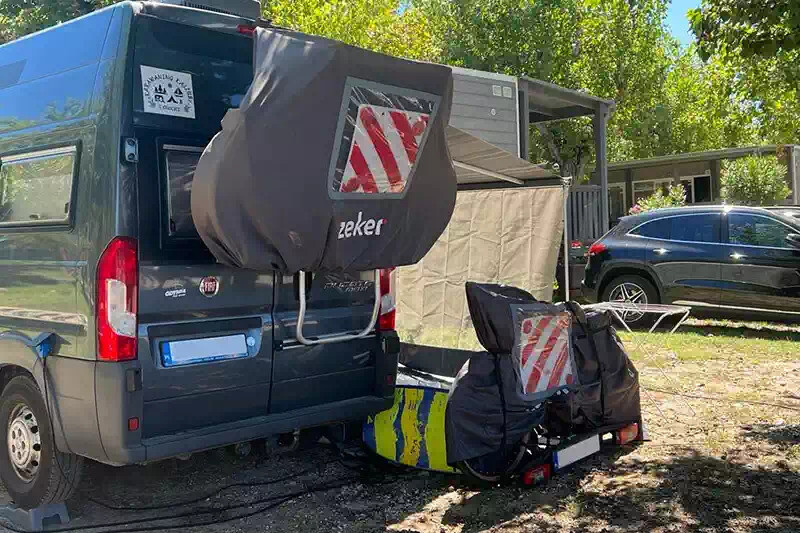 kryt nosiče jízdních kol připevněný k tažnému zařízení