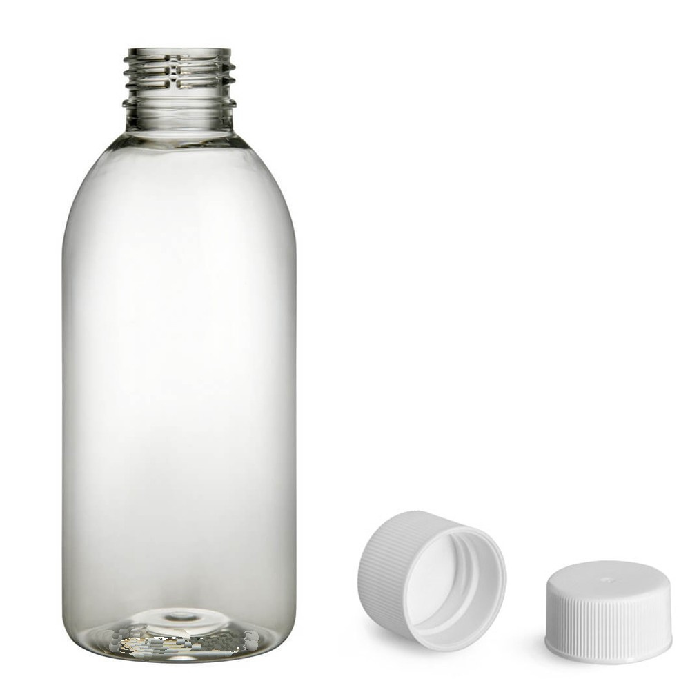 Plastová lahvička čirá s bílým uzávěrem 250 ml