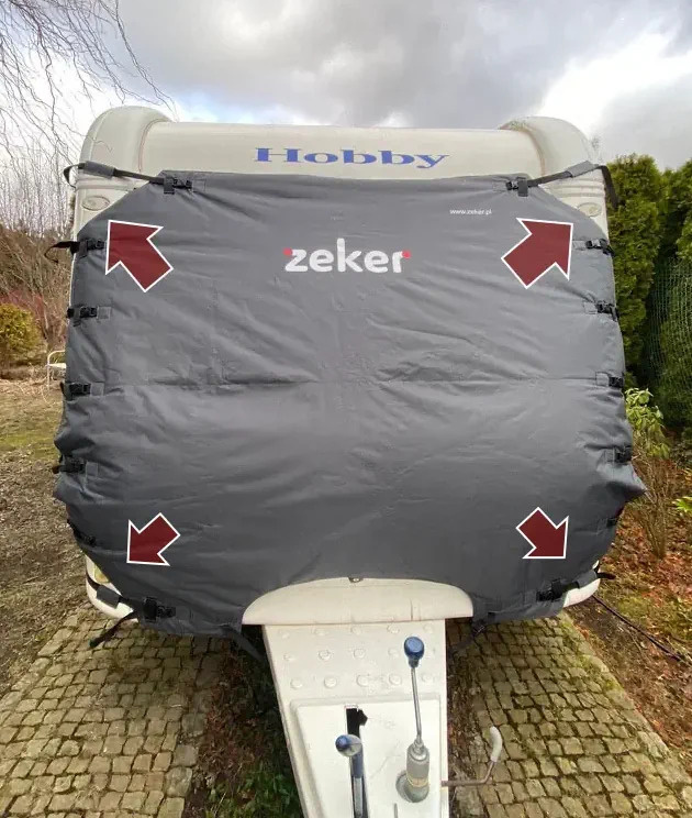 Ochranná krycí plachta, která chrání čelní okno a stěnu karavanu před ledem ,sněhem a odletajícím kamínkům od tažného vozidla.