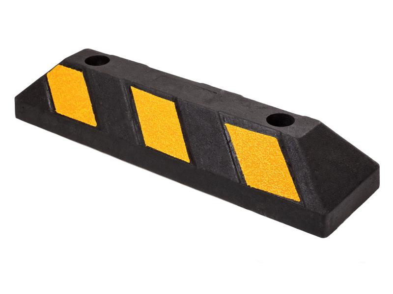 Robustní parkovací doraz / zábrana z recyklovatelného kaučuku slouží jako bezpečnostní ochranný prvek pro vymezení krajů parkovacích míst.