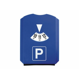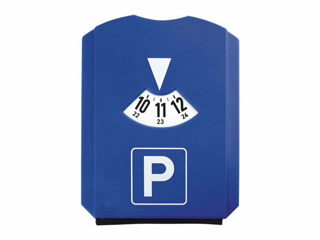 Parkovací hodiny se škrabkou na led. Hodiny jsou vyrobeny z pevného modrého plastu. V zimě poslouží i jako praktická škrabka ledu a sněhu z oken auta.