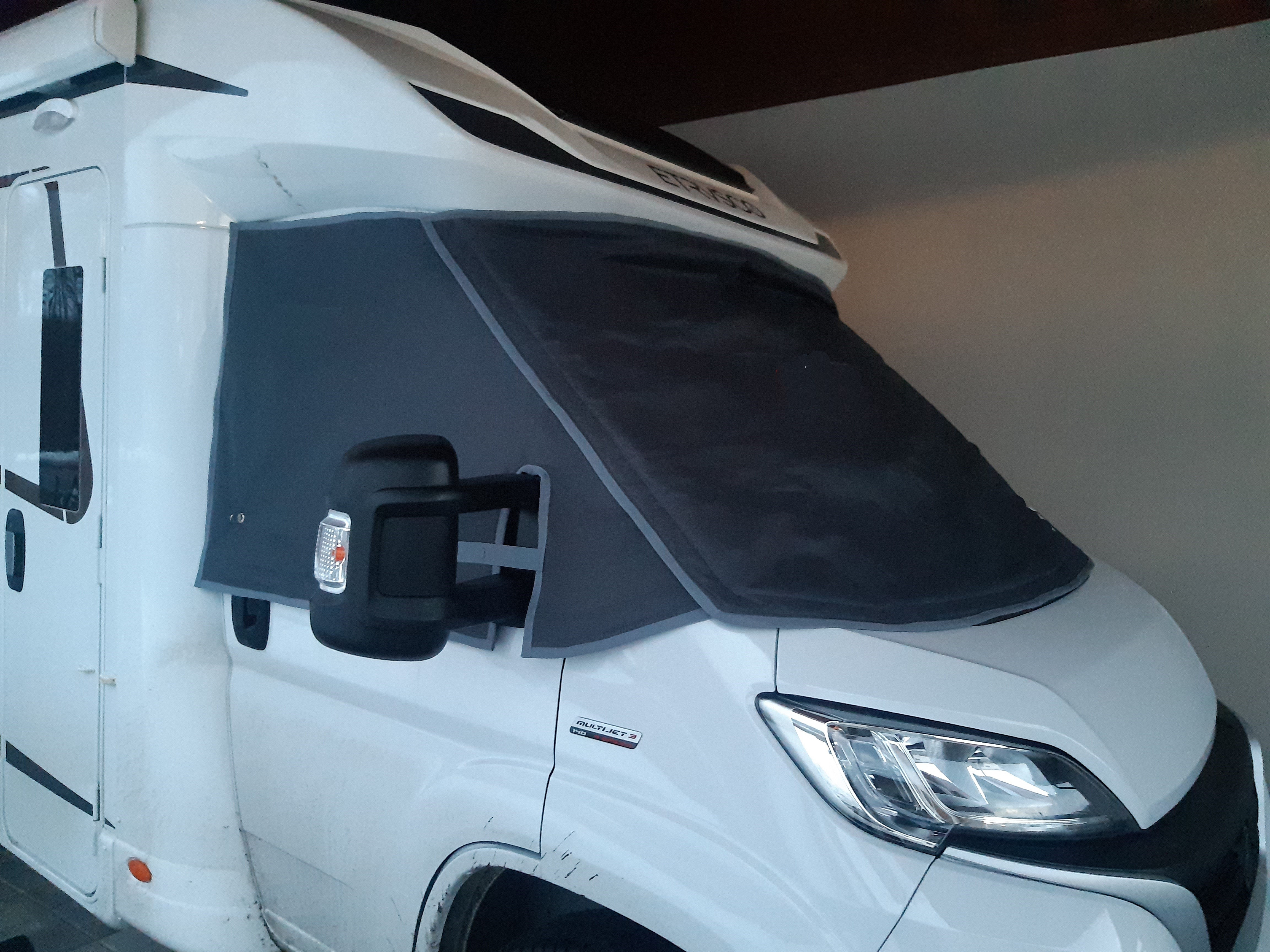 pulkabát , celokabát , krycí plachta , izolační folie , ochranná plachta obytného vozu , termoizolační plachta ,zimní kabát Fiat Ducato , Izolační termofólie do oken pro dodávky a obytná auta , krycí folie předního skla , izotermické folie karavanů , Zimní termo folie , Půlkabát na Fiat Ducato , Kryt kabiny přední plachta , krycí plachta , termo plachta , krycí zimní plachta pro obytná auta , vnější zimní clona ,
