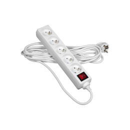 Praktický prodlužovací kabel s 5 zásuvkami. Na kabelu naleznete také centrální vypínač pro snadné a rychlé odpojení spotřebičů od elektrické sítě.
