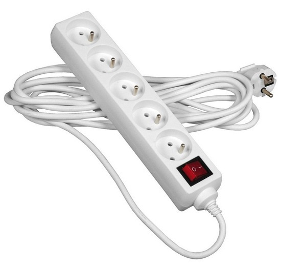 5 uzemněných zásuvek s odolným kabelem o délce 2 metry. Určeno pouze pro vnitřní použití.