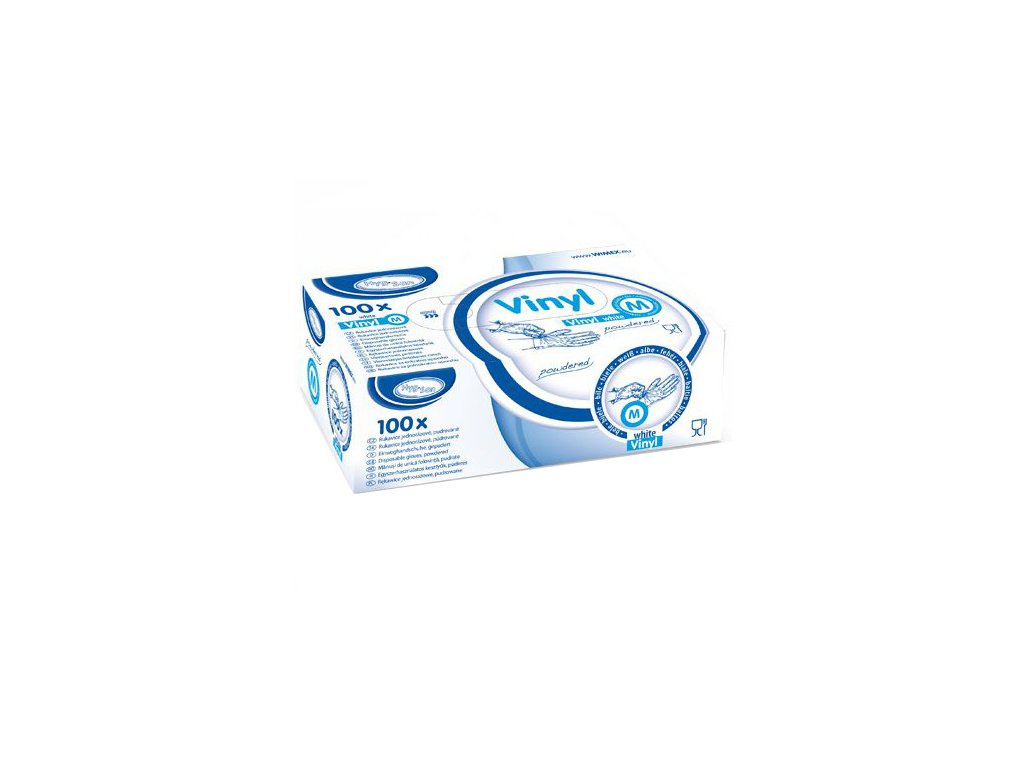 velikost M, vyrobené z vinylu, 100 kusů v balení, bílá barva