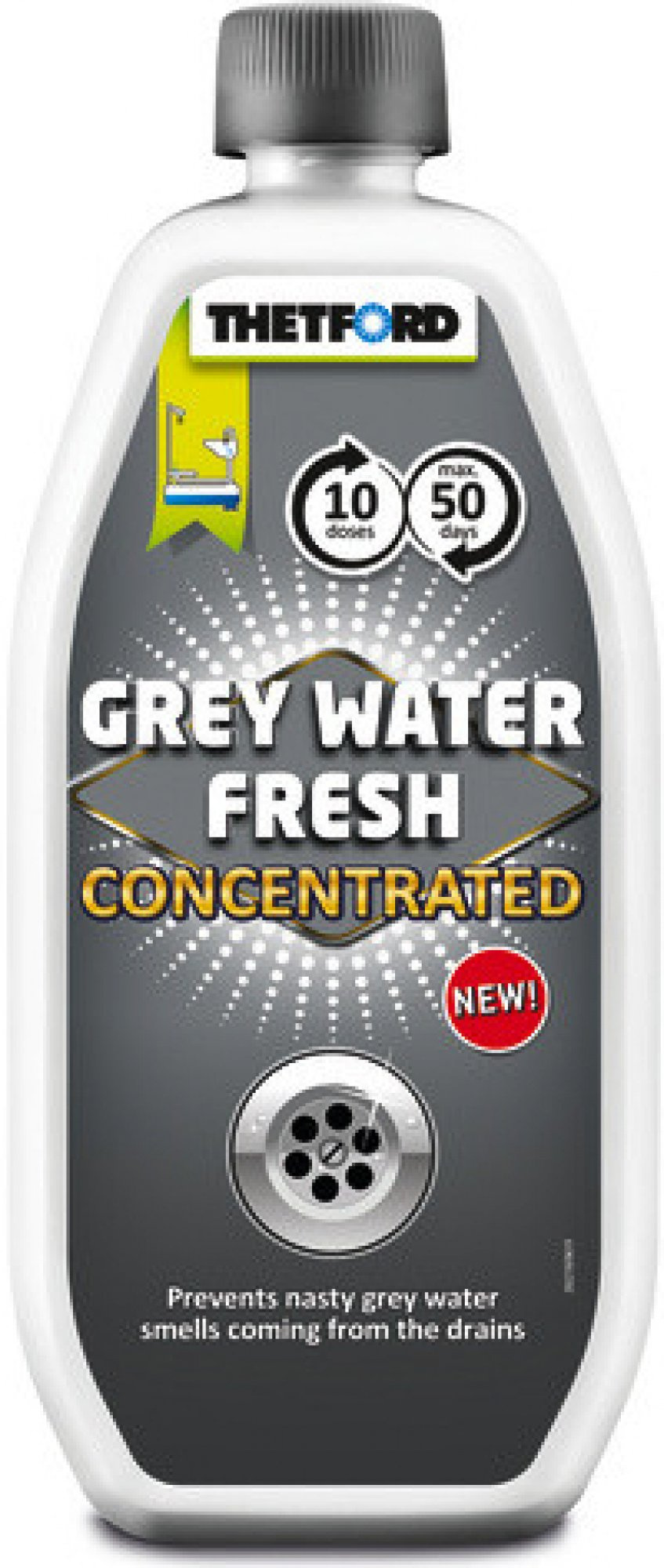 Grey Water Fresh Koncentrát 0,8l,tekutina do odpadní nádrže karavan,chemie proti zápachu odpadní voda,prostředek do šedé vody obytný vůz,Grey Water Fresh dávkování,Thetford Grey Water Fresh