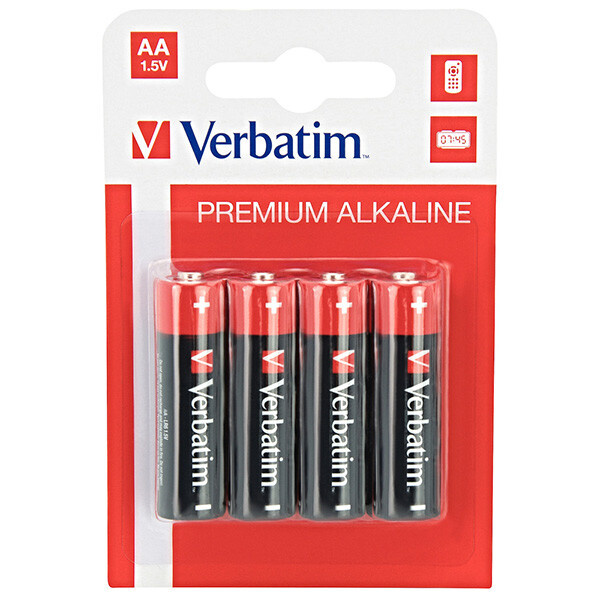 alkalické baterie Verbatim AA, Verbatim AA, AA baterie, tužkové baterie, LR6 baterie, 1.5V AA baterie, baterie do rádia, baterie do MP3, baterie do fotoaparátu, baterie do dálkového ovladače, 4-pack AA baterie, výhodné AA baterie, ekologické AA baterie Verbatim, recyklovatelné AA baterie.