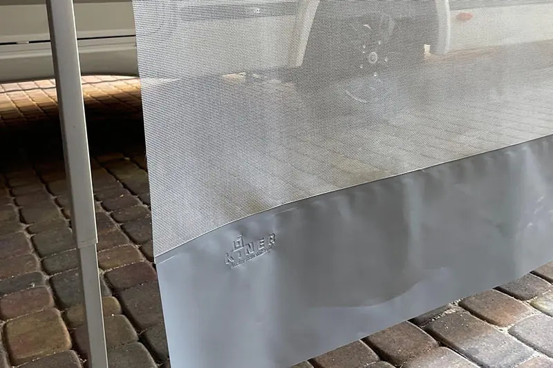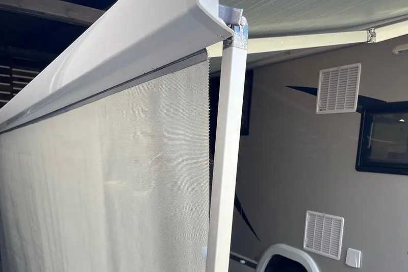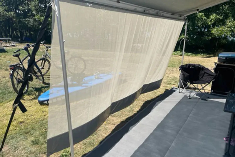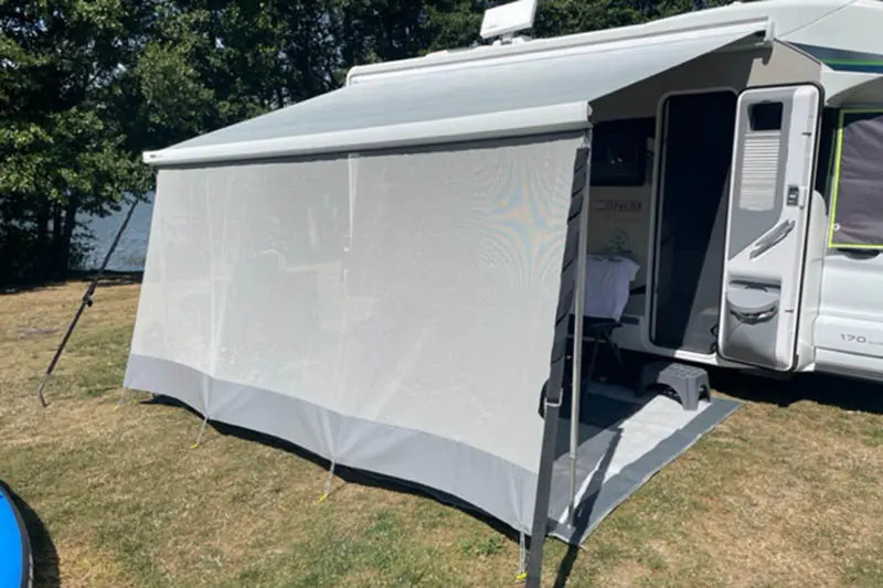 Přední stínící kryt pro markýzy pro obytné vozy a karavany. Poskytuje ochranu před sluncem při zachování proudění vzduchu. Stínící síť odráží 85 % slunečních paprsků. Kromě ochrany před sluncem poskytuje pocit soukromí.